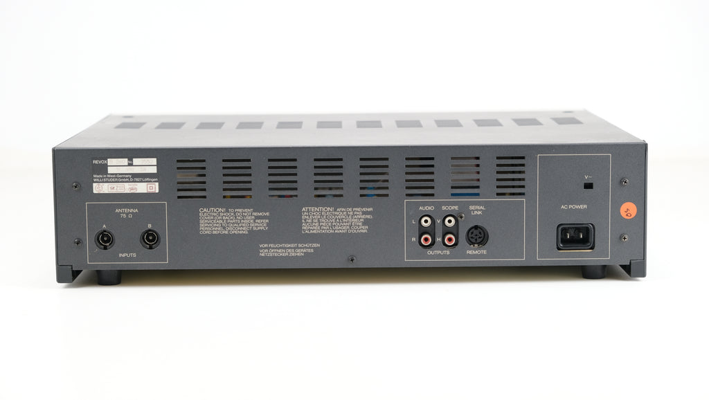 The Revox B260 FM Stereo Tuner boasts impressive technical specifications and performance capabilities, making it a standout choice for discerning audio enthusiasts. With a sensitivity of 2uV and exceptional selectivity of 100dB, it ensures excellent reception quality even in challenging environments with minimal interference. Its digital tuning scale and wide FM tuning range from 87.5 to 108 MHz enable precise and accurate station selection. Additionally, the tuner delivers a robust output of 1900mV, ensuring compatibility with a wide range of audio systems and providing ample signal strength for clear and dynamic sound reproduction. Its solid construction and sleek design further enhance its appeal, making it a prized component in any high-fidelity audio setup.