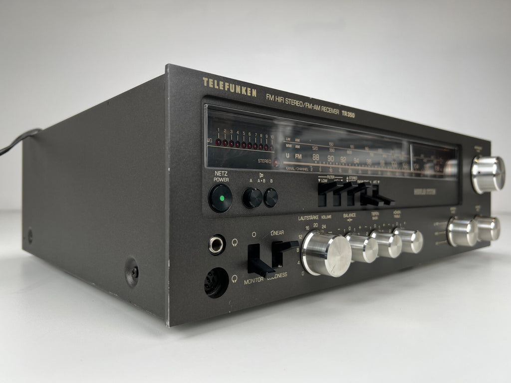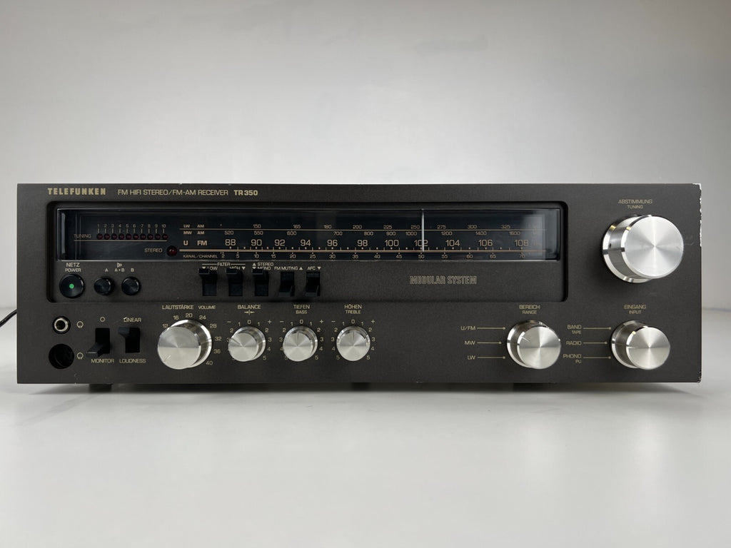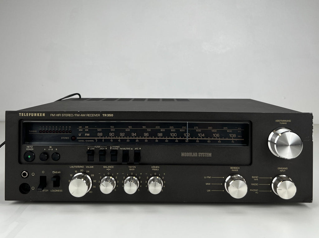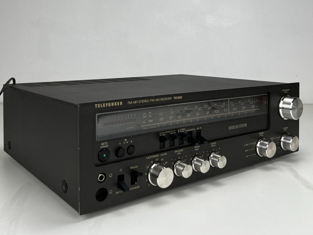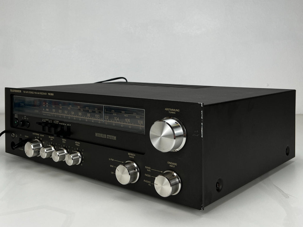 The vintage Telefunken TR-350 Stereo Receiver was a powerful unit, delivering 50watts per channel at 8 ohms, suitable for medium-sized speaker systems. Featuring a built-in tuner and multiple inputs, it accommodated various audio sources such as turntables and tape decks. With tone controls allowing adjustments for bass and treble frequencies, users could fine-tune their audio preferences. Telefunken's meticulous engineering ensured minimal distortion and clean signal processing, maintaining audio fidelity. The TR-350's durable construction and high-quality components spoke to Telefunken's reputation for reliability. Overall, it stood as a versatile and capable vintage receiver for audio enthusiasts.