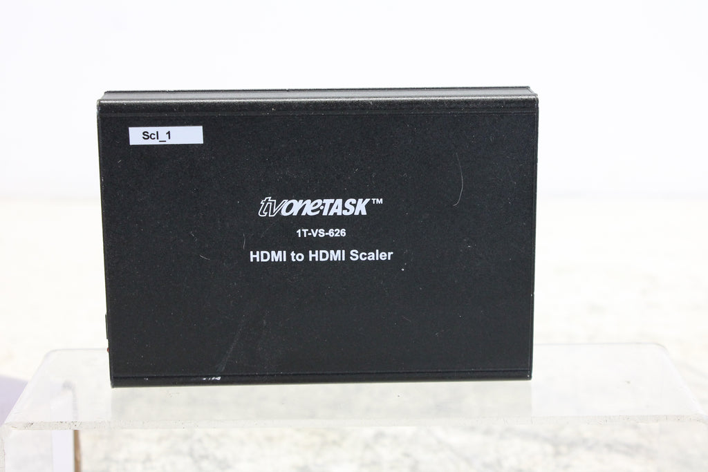 The 1T-VS-626 HDMI Scaler from TV One is designed to scale HDMI signals to a selectable output resolution while maintaining audio signals. It accepts the audio signal embedded in the incoming HDMI signal or from separate Toslink or analog stereo inputs. HDMI output can be the same resolution if so desired. This device is well suited for use when the HDMI source resolution or frame rate is incompatible with the display device's resolution or frame rate, among many other possible applications.